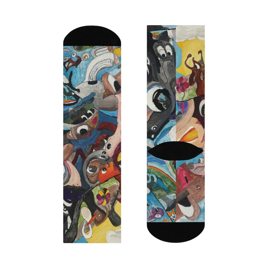 These cushioned DTG crew socks are a one-size style designed with both function and appearance in mind. With the fully cushioned heel-to-toe, these socks provide superior comfort, while the DTG print process allows for ultra-crisp, crease-free printing. Composed of 73% polyester, 18% nylon, 6% spandex, and 3% cotton, these socks are an elevated alternative to the typical sublimation sock and provide a clean, comfortable base for your all-over print designs.